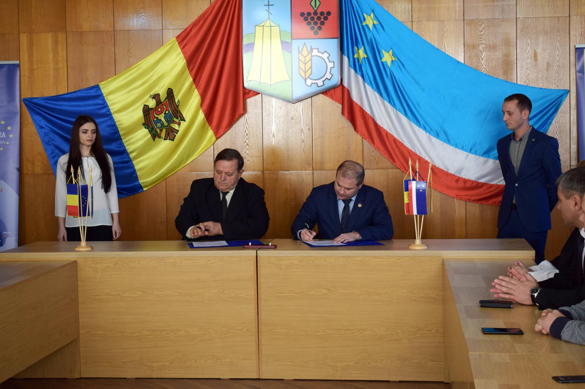 În imagini domnul Anatoli TOPAL, Primar Ceadîr-Lunga și domnul Ștefan ŞILOCHI, Primar Târgu-Ocna, județul Bacău, ROMÂNIA.